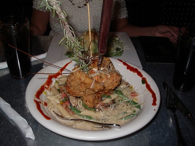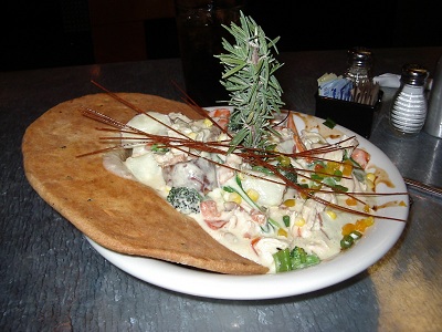Our food was brought to us within 20 minutes and the size of this Big O’ Chicken Pot Pie was close to scary. How in earth were we going to eat all this food. Even the salad was huge. We started our dinner and the temperature and taste of the food was great. The vegetables tasted fresh and crispy and the sauce was delicious. Our waiter dropped by several times during the meal to check if we were doing ok. We ate all we could but we simply couldn’t eat it all. It was too much food. We thoroughly enjoyed our first meal and decided to come back soon. Total bill for food, drinks and a 20% tip was $40 for the two of us. A bargain in our opinion.